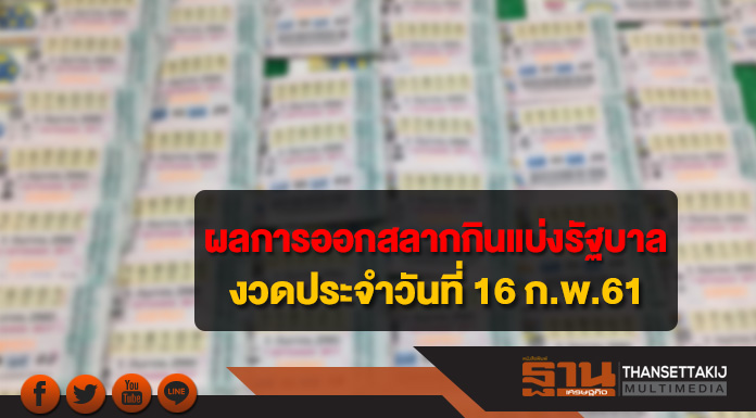 ผลการออกรางวัลสลากกินแบ่งรัฐบาล งวดประจำวันที่ 16 กุมภาพันธ์ 2561