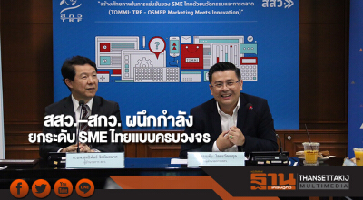 สสว.-สกว. เปิดตัว “โครงการสร้างศักยภาพในการแข่งขันของ SME ไทยด้วยนวัตกรรมและการตลาด” หวังผลิตผู้ประกอบการไทยก้าวสู่มืออาชีพ ตั้งเป้าใน 3 ปี ส่งผู้ประกอบการถึงฝั่ง 300 รายสร้างมูลค่าระบบเศรษฐกิจ 600 ล้านบาท