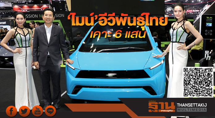 ต้นแบบ...“อีเอ” เปิดตัวรถพลังงานไฟฟ้าแบรนด์ “ไมน์” ในงานบางกอกมอเตอร์โชว์ 2018 เผยราคารุ่นแฮตช์แบ็กไม่เกิน 6 แสนบาท และเอ็มพีวีตํ่ากว่า 1 ล้านบาท ชู “อีวี” ฝีมือคนไทย ผลิตที่โรงงานจ.ฉะเชิงเทรา พร้อมส่งมอบปลายปีหน้า[/caption]