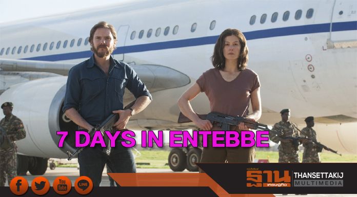 โจเซ่ พาดิลฮา ผู้กำกับภาพยนตร์ 7 DAYS IN ENTEBBE บอกเล่าเรื่องราวคู่ขนานกันสองเรื่องซึ่งเกี่ยวพันกับเหตุการณ์จู่โจม โดยเรื่องหนึ่ง ว่าด้วยเรื่องราวของเหล่าตัวประกันและกลุ่มผู้ก่อการร้าย โดยจะแสดงให้เห็นว่าพวกเขามีปฏิสัมพันธ์กันอย่างไร และเผยถึงสภาพจิตใจที่เปลี่ยนแปรไปตามวันเวลาที่ล่วงผ่าน ส่วนอีกเรื่องหนึ่งนั้น จะแสดงให้เห็นถึงการพูดคุยถกเถียงกันภายในคณะรัฐบาลอิสราเอลต่อเหตุการณ์จี้เครื่องบินที่เกิดขึ้น โดยมีฝ่ายที่ยืนยันว่า จะไม่ยอมให้มีการเจรจาต่อรองเกิดขึ้นโดยเด็ดขาดคือ รัฐมนตรีกระทรวงกลาโหม ชิมอน เปเรส ตรงข้ามกับนายกรัฐมนตรีอิสราเอล ยิตซัค ราบิน ผู้มองว่าควรนำเอาการเจรจาต่อรองขึ้นมาเป็นทางเลือก