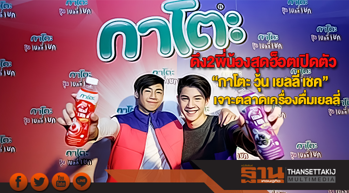 บริษัท เบอร์ลี่ ยุคเกอร์ จำกัด (มหาชน) หรือ บีเจซี ร่วมกับ บริษัท ทวีผลผลิตภัณฑ์ จำกัด ยกทัพผู้บริหาร เปิดตัวผลิตภัณฑ์ใหม่ “กาโตะ วุ้น เยลลี่เชค” พร้อมคอนเซ็ปต์ “เชค 1 ได้ถึง 3 อร่อย” เจาะกลุ่มเป้าหมายวัยรุ่น พร้อมเปิดตัวพรีเซ็นเตอร์ “เจ้านาย” จินเจษฏ์ วรรธนะสิน และ “เจ้าสมุทร” จักร วรรธนะสิน ตั้งเป้าขยายตลาดใหม่ในกลุ่มเยลลี่พร้อมดื่มรูปแบบขวด