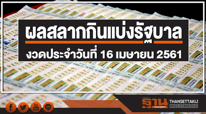 ผลสลากกินแบ่งรัฐบาล งวดประจำวันที่ 16 เมษายน 2561