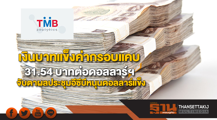 เงินบาทแข็งค่ากรอบแคบ31.54 บาทต่อดอลลาร์ฯจับตาผลประชุมอีซีบีหนุนดอลลาร์แข็ง