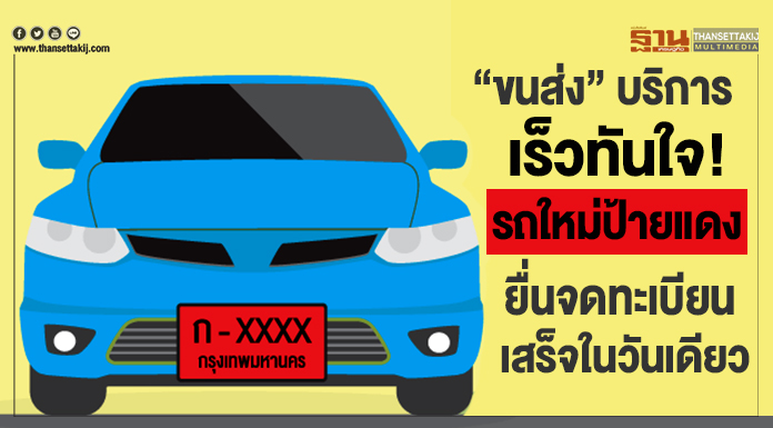 กรมการขนส่งทางบก แนะ!!! เจ้าของรถใหม่ป้ายแดง เตรียมเอกสารหลักฐานครบถ้วนถูกต้อง สามารถจดทะเบียนรถใหม่แล้วเสร็จภายในวันเดียว ด้านผู้จำหน่ายรถอำนวยความสะดวกเตรียมเอกสารและให้คำแนะนำแก่ผู้ซื้อรถ เพื่อประชาชนทุกคนได้ใช้รถที่จดทะเบียนถูกต้องอย่างมั่นใจ