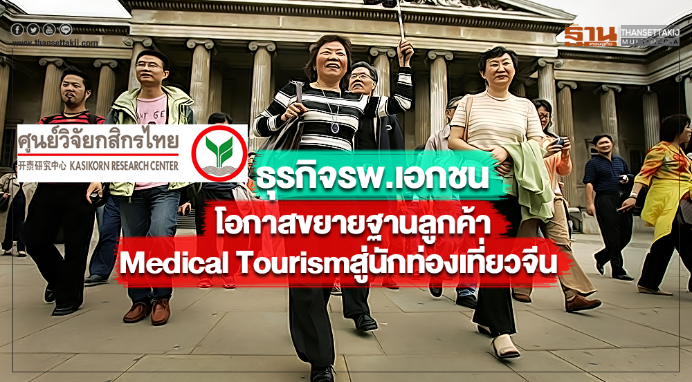 ศูนย์วิจัยกสิกรไทยมองว่า จากจำนวนนักท่องเที่ยวจีนที่เดินทางมาไทย ประกอบกับแนวโน้มของคนจีนที่เดินทางไปรักษาพยาบาลในต่างประเทศเพิ่มขึ้นนั้น ทำให้ธุรกิจโรงพยาบาลเอกชนของไทยมีโอกาสขยายตลาด Medical Tourism ไปยังกลุ่มลูกค้าจีนมากขึ้น โดยเฉพาะการให้บริการในเรื่องของความงาม (Beauty) ที่คนจีนให้ความสนใจเพิ่มขึ้น ซึ่งไทยเองก็ค่อนข้างมีศักยภาพในการแข่งขัน เช่น ศัลยกรรมความงามบนใบหน้า ภาวะมีบุตรยาก รวมถึงบริการที่ไม่ซับซ้อน เช่น ทันตกรรม เวชศาสตร์ชะลอวัย หรือแม้แต่ตรวจสุขภาพ แต่ทั้งนี้ ผู้ประกอบการไทยก็อาจจะต้องเผชิญการแข่งขันกับญี่ปุ่น เกาหลีใต้และมาเลเซีย ซึ่งเป็นตลาดหลักของกลุ่ม Medical Tourism ชาวจีนเช่นกัน