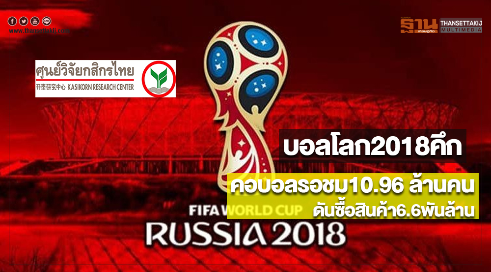 กีฬาฟุตบอลโลก 2018 : คาดแฟนบอลติดตาม 10.96 ล้านคน...อานิสงส์สู่สินค้าอุปโภคและบริโภคประมาณ 6,685 ล้านบาท