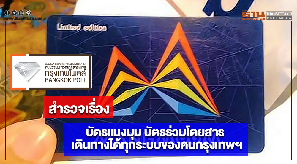 เมื่อวันที่ 22 มิถุนายน ที่ผ่านมา มีการเปิดตัวและแจก “บัตรแมงมุม” เพื่อนำร่องใช้สำหรับรถไฟฟ้าฟ้าสายสีม่วงและสายสีน้ำเงิน จำนวน 200,000 ใบ ให้กับประชาชน ในทุกสถานีของรถไฟฟ้าสายสีม่วงจนกว่าจะหมด กรุงเทพโพลล์โดยศูนย์วิจัยมหาวิทยาลัยกรุงเทพ จึงดำเนินการสำรวจความคิดเห็นเรื่อง “บัตรแมงมุม บัตรร่วมโดยสาร เดินทางได้ทุกระบบของคนกรุงเทพฯ ” โดยเก็บข้อมูลจากประชาชนในพื้นที่กรุงเทพมหานครและปริมณฑล ที่ใช้บริการระบบขนส่งสาธารณะในกรุงเทพฯ รวมทั้งสิ้น 1,184 คน มีผลสำรวจดังนี้