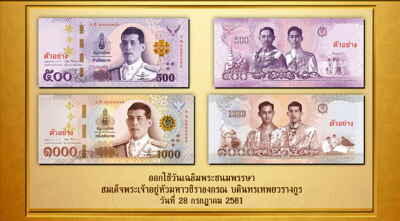 ธปท.นำธนบัตรแบบ 17 ชนิดราคา 500 บาทและ 1,000 บาท ออกใช้เนื่องในวันเฉลิมพระชนมพรรษาสมเด็จ พระเจ้าอยู่หัวมหาวชิราลงกรณ บดินทรเทพยวรางกูร 28 กรกฎาคม 2561