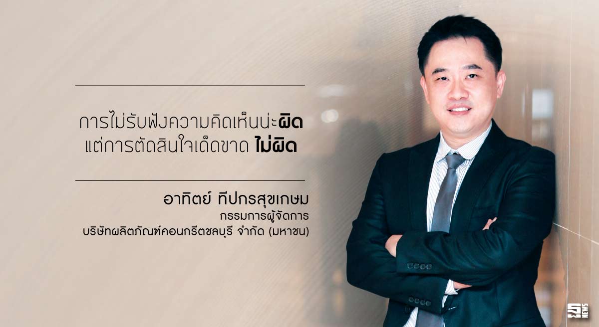 การสร้างธุรกิจ สิ่งสำคัญคือ ต้องสร้างธุรกิจที่สามารถเติบโตได้ตามระบบการทำงาน ไม่ใช่การเติบโตที่เกิดจากคนเพียงคนเดียว หรือเพียงตระกูลเดียว นี่คือสิ่งที่ "อาทิตย์ ทีปกรสุขเกษม" กรรมการผู้จัดการ บริษัทผลิตภัณฑ์คอนกรีตชลบุรี จำกัด (มหาชน) มองเห็น และกำลังพัฒนาองค์กรของเขา ที่ตระกูลเป็นผู้ถือใหญ่ ให้สามารถเติบโตได้อย่างยั่งยืน ไม่ว่าจะเป็นเขาบริหาร หรือคนอื่นเข้ามาบริหาร