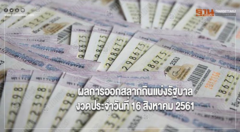 ตรวจสลากกินแบ่งรัฐบาล16 สิงหาคม 2561