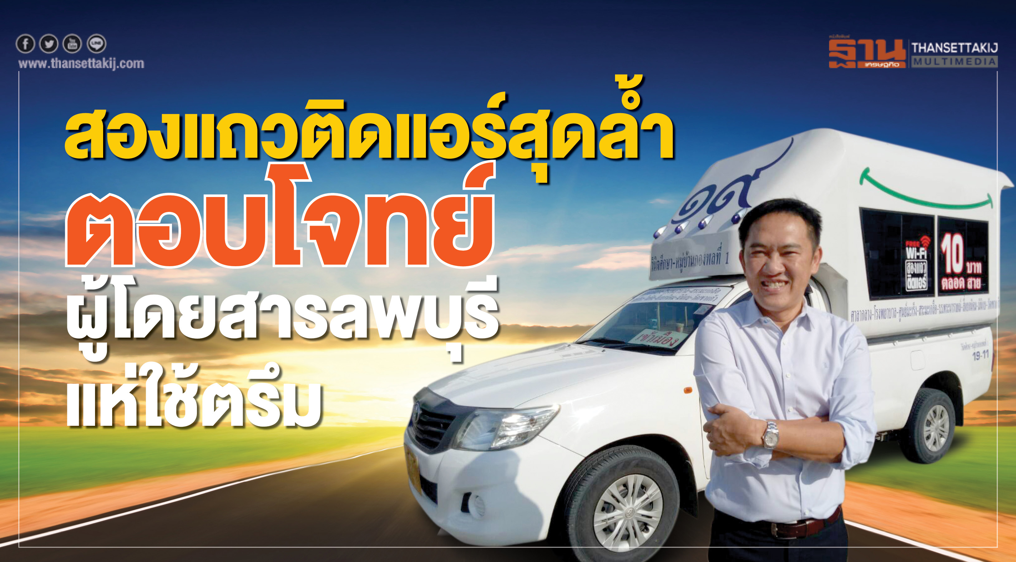 หนึ่งในกระแสฮอตฮิตที่ถูกกล่าวถึงกันมากในแวดวงโซเชียลเมืองลพบุรี คือ รถโดยสารสองแถวติดแอร์ ฟรีไว-ไฟ มีกล้องวงจรปิด ติดตั้งจีพีเอสควบคุมความเร็ว ทั้งหมดนี้ผู้โดยสารจ่ายเพียง 10 บาทตลอดสาย จนทำให้โลกโซเชียลต่างมีการพูดถึงรถโดยสารสาธารณะของจังหวัดลพบุรี ที่มีการบริการสุดคูลและไฮเทค จนมีหลายๆจังหวัดอยากให้มีการพัฒนารถสองแถวในลักษณะนี้บ้าง “ฐานเศรษฐกิจ” ได้สัมภาษณ์ นายสรชัช คงเดช กรรมการผู้จัดการขนส่งมวลชนลพบุรี ถึงที่มาของรถโดยสารสองแถวติดแอร์สุดลํ้า