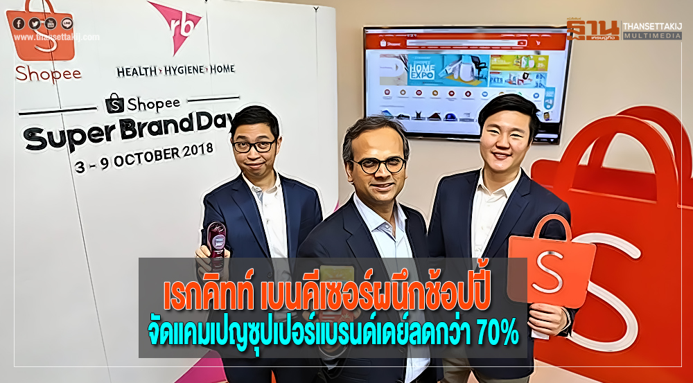 มร.เฟราซ ซิสดรีกรี้ ผู้อำนวยการด้านอีคอมเมิร์ซบริษัท เรกคิทท์ เบนคีเซอร์ (ประเทศไทย) จำกัด เผยว่า เรกคิทท์ เบนคีเซอร์ คือผู้ผลิตและจำหน่ายผลิตภัณฑ์อุปโภค และผลิตภัณฑ์เพื่อสุขภาพระดับนำของโลก ได้เข้าร่วมกับ ช้อปปี้ผู้นำตลาดอีคอมเมิร์ซในเอเชียตะวันออกเฉียงใต้และไต้หวัน จัดแคมเปญพิเศษ ซูเปอร์แบรนด์เดย์ โดยนำสินค้าแบรนด์ระดับชั้นนำกว่า 10 แบรนด์ ได้แก่ เอนฟาโกร [Enfagrow], ดูเร็กซ์ [Durex], เดทตอล [Dettol], วีท [Veet] และ สกอลล์ [Scholl]เป็นต้น มาจำหน่ายออนไลน์ ในราคาลดสูงสุด 70 % ทุกแบรนด์ พร้อมคืนเงินให้อีก 10% ทั้งมีกิจกรรมแจกรางวัล iPad ให้กับผู้มียอดซื้อสินค้าสูงสุด ยิ่งไปกว่านั้นบริการจัดส่งฟรี โดยไม่มียอดสั่งซื้อขั้นต่ำ เพื่อตอบสนองไลฟ์สไตล์ของนักช้อปรุ่นใหม่ ทั้งนี้ แคมเปญซุปเปอร์แบรนด์เดย์จะจัดเพียง 7 วันเท่านั้น ตั้งแต่วันที่ 3-9 ตุลาคม 2561 นี้