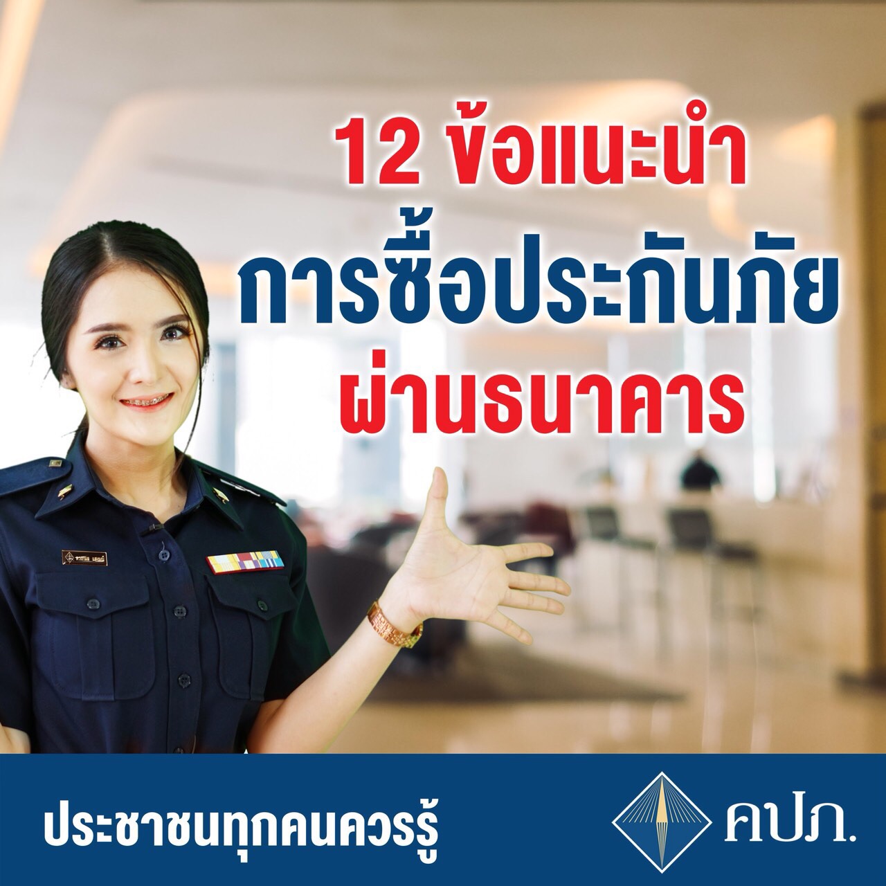 ทั้งนี้ 12 ข้อ ประกอบด้วย 1.การซื้อประกันภัยไม่ใช่การฝากเงินกับธนาคาร 2.ขอดูใบอนุญาตเป็นนายหน้าประกันภัยของพนักงานก่อน 3.ควรเลือกแบบประกันภัยที่ให้ความคุ้มครองตรงกับความต้องการ 4.วางแผนและประมาณการรายรับ-รายจ่าย ก่อนซื้อเพื่อให้สามารถจ่ายเบี้ยประกันภัยครบตลอดสัญญา 5.ควรเข้าใจถึงความคุ้มครอง/ข้อยกเว้น ของกรมธรรม์นั้นๆ ก่อนทำสัญญา ควรเก็บเอกสารประกอบการเสนอขายของธนาคารไว้