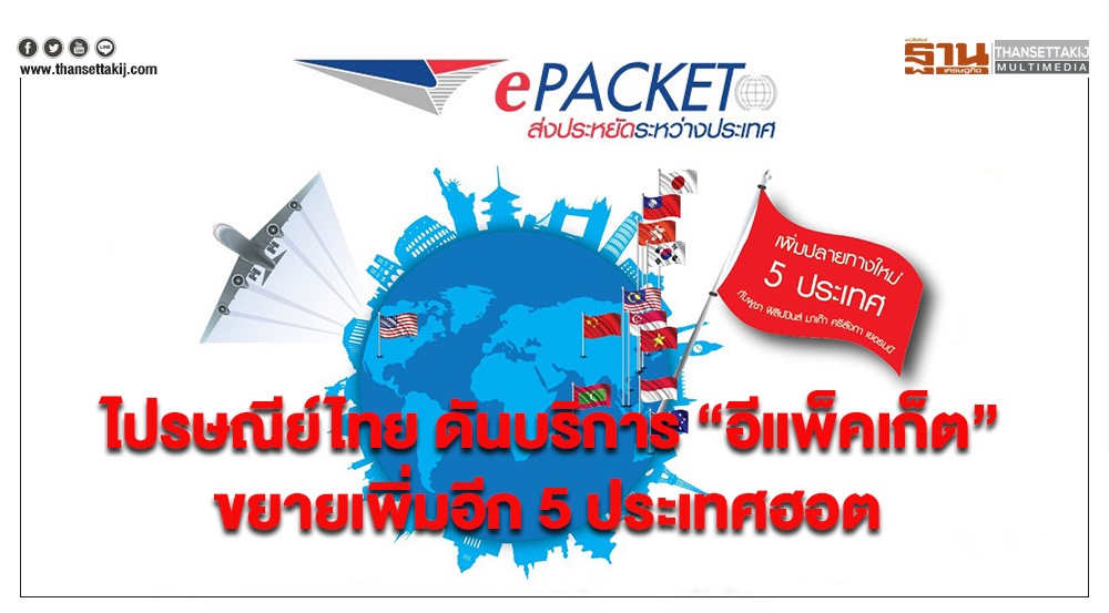 ไปรษณีย์ไทย ดันบริการ “อีแพ็คเก็ต” ขยายเพิ่มอีก 5 ประเทศฮอต หนุนอีคอมเมิร์ซยิ้ม ส่งนอกประหยัดได้มากขึ้น
