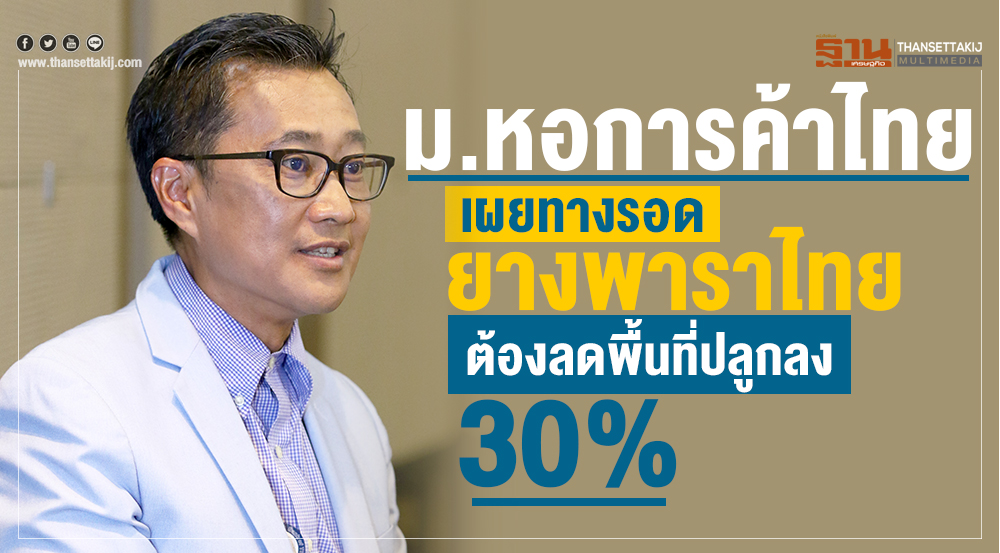 ม.หอการค้าไทย เผยผลวิจัยทางรอดยางพาราไทย ต้องใช้ในประเทศมากขึ้นและลดพื้นที่ปลูกลง 30% หลังส่งออกมากถึง 86% ทำให้ตลาดมีอำนาจกำหนดราคา