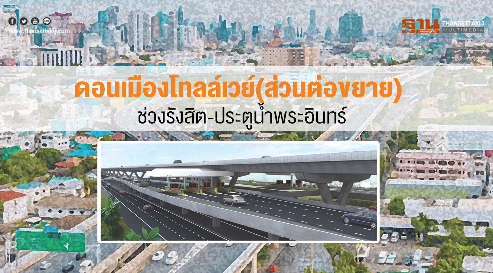 “ทางยกระดับอุตราภิมุข” หรือเรียกกันทั่วไปว่า “ดอนเมืองโทลล์เวย์” ส่วนต่อขยายช่วงรังสิต-ประตูนํ้าพระอินทร์ แนวเส้นทางเริ่มต้นจากบริเวณจุดสิ้นสุดทางยกระดับดอนเมืองโทลล์เวย์ในปัจจุบัน บริเวณรังสิต บนถนนพหลโยธินช่วงกม.33+942 ไปถึงจุดสิ้นสุดบริเวณประตูนํ้าพระอินทร์ ในเขตพื้นที่ต.เชียงรากน้อย อ.บางปะอิน จ.พระนครศรีอยุธยา ระยะทางประมาณ 17 กม. ครอบคลุมพื้นที่ 2 จังหวัดคือปทุมธานีและพระนครศรีอยุธยา
