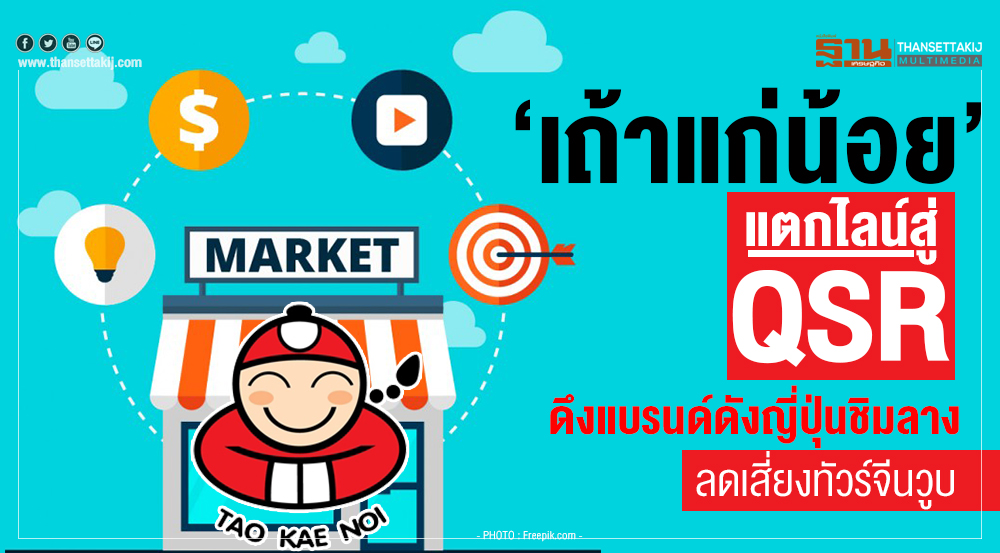 “เถ้าแก่น้อย” แตกไลน์ธุรกิจใหม่ สู่ QSR หวังลดเสี่ยง หลังไทยเผชิญวิกฤติยอดนักท่องเที่ยวจีนวูบ พร้อมชูวิชันใหม่ “Marketing Happy” สร้างแบรนด์ทะยานสู่โกลบัล ล่าสุดทุ่ม 150-200 ล้านบาท ใน 4 ปี ปั้น “เถ้าแก่น้อยแลนด์” เพิ่ม 100 สาขา เจาะทุกหัวเมืองหลัก