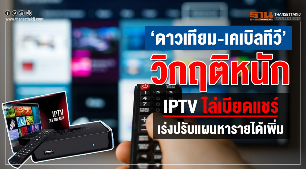 ตลาดดาวเทียม-เคเบิลทีวีระอุ หลังถูก IPTV BOXไล่บี้เบียดแชร์ ผู้ประกอบการแห่ปิดกิจการกว่า 50% “เจริญ เคเบิลทีวี” เร่งปรับแผนส่งบริการอินเตอร์เน็ตตอบโจทย์ลูกค้า B2B ด้าน “ไอพีเอ็ม” วางเกมขยายแพลตฟอร์มสู่พรีเมียม เน้นโลคัลคอนเทนต์เจาะกลุ่มผู้ชม