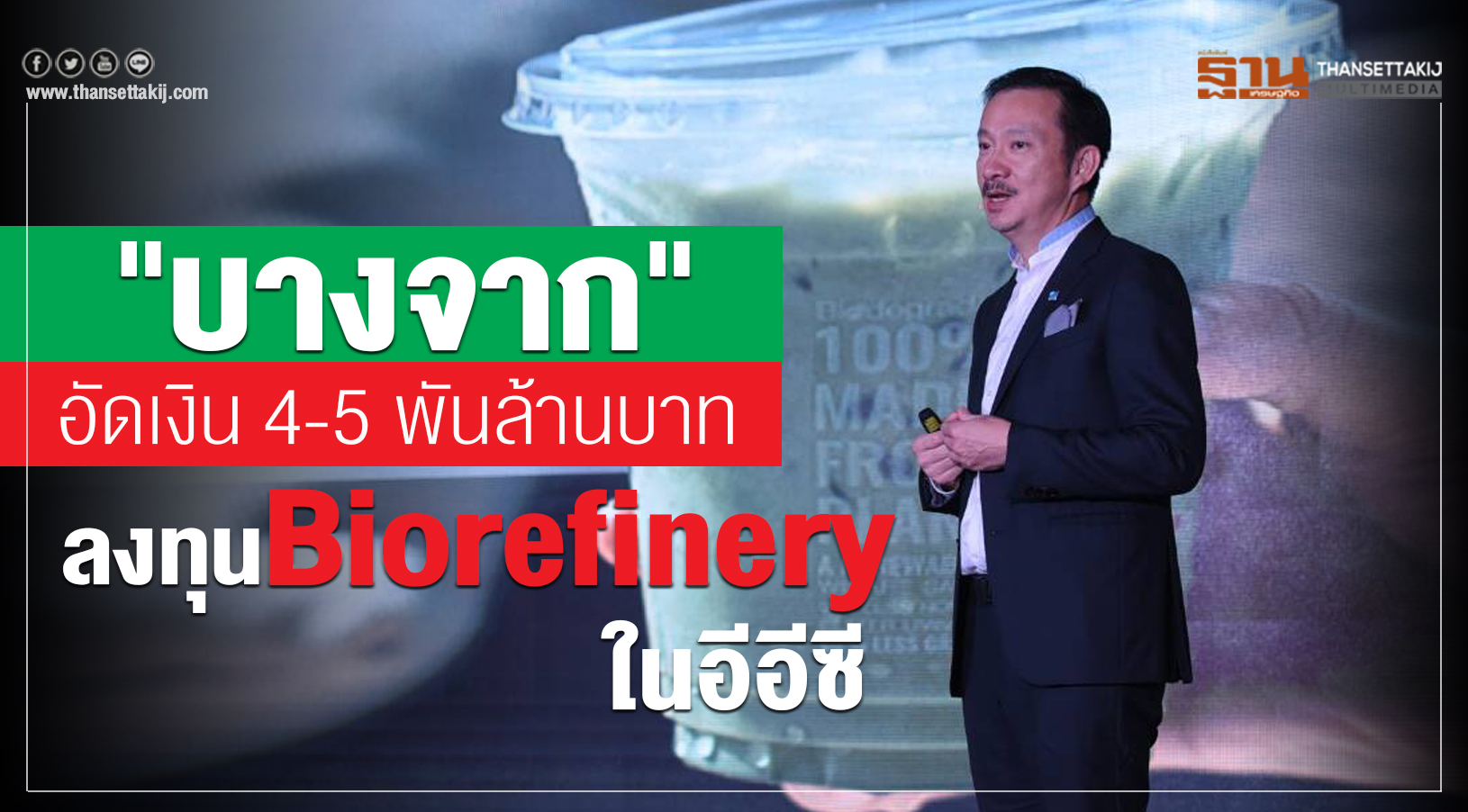 "บางจาก"อัดเงิน 4-5 พันลบ. ลงทุน Biorefinery ในอีอีซี แย้มศึกษาลงทุนโรงกลั่นชีวภาพ (Biorefinery) โดยการนำน้ำตาลที่ได้จากกระบวนการผลิตเจเนอเรชั่นที่ 2มาสกัดเป็นน้ำตาล มาผลิตเป็นไบโอเบส