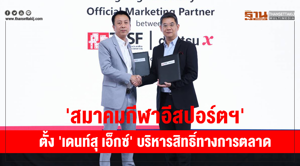 ‘สมาคมกีฬาอีสปอร์ตแห่งประเทศไทย’ แต่งตั้ง ‘เดนท์สุ เอ็กซ์’ ให้เป็นผู้ถือสิทธิ์การตลาดอย่างเป็นทางการ พร้อมยกระดับอุตสาหกรรมอีสปอร์ตขึ้นสู่เวทีระดับนานาชาติ , หวังขับเคลื่อนเศรษฐกิจของไทย