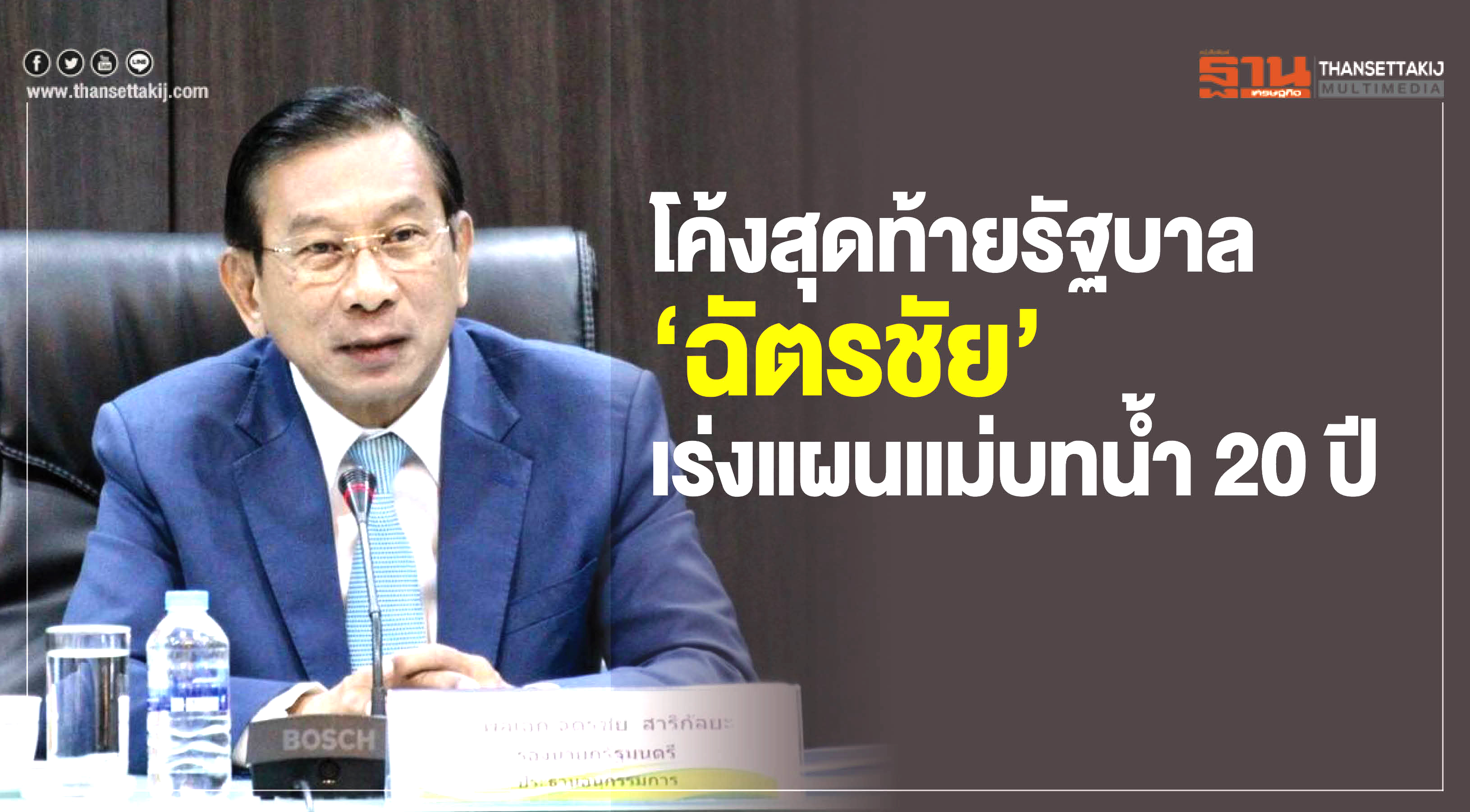 "บิ๊กฉัตร" ลุยแผนแม่บทน้ำ 20 ปี เตรียงชงเข้าที่ประชุม กนช. เห็นชอบ 19 ธ.ค. นี้ หวังเป็นคัมภีร์ด้านน้ำของประเทศ ครอบคลุม 6 ด้าน สู่เป้าหมายการยกระดับการบริหารจัดการทรัพยากรน้ำอย่างเป็นระบบ แก้ปัญหาการขาดแคลนน้ำแล้ง แก้ปัญหาน้ำท่วมในเขตพื้นที่เศรษฐกิจอีอีซี-แหล่งท่องเที่ยว