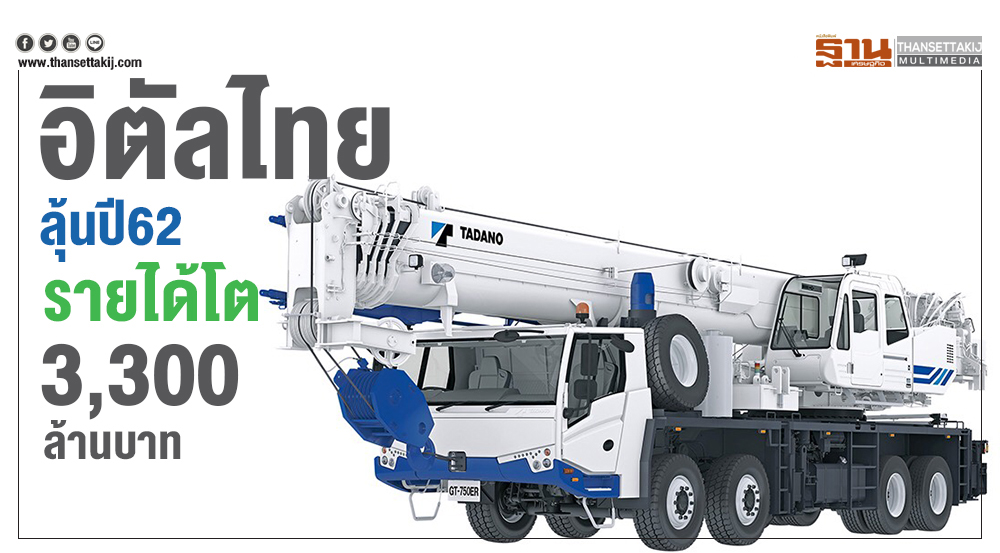 นายอดิศร์ พฤกษ์พัฒนรักษ์ ประธานเจ้าหน้าที่บริหาร บริษัท อิตัลไทยอุตสาหกรรม จำกัด หรือ ITI ผู้แทนจำหน่ายรถเครนแบรนด์ทาดาโนประจำประเทศไทย เปิดเผยว่า สำหรับการคาดการณ์รายได้ปี 2561 แม้จะเหลืออีก 1 เดือน บริษัทฯ ตั้งเป้ารายได้อยู่ที่ 2,700 ล้านบาท และในปี 2562 บริษัทฯ ตั้งเป้ามีรายได้เติบโตเพิ่มขึ้น 22% และตั้งเป้ารายได้อยู่ที่ 3,300 ล้านบาท