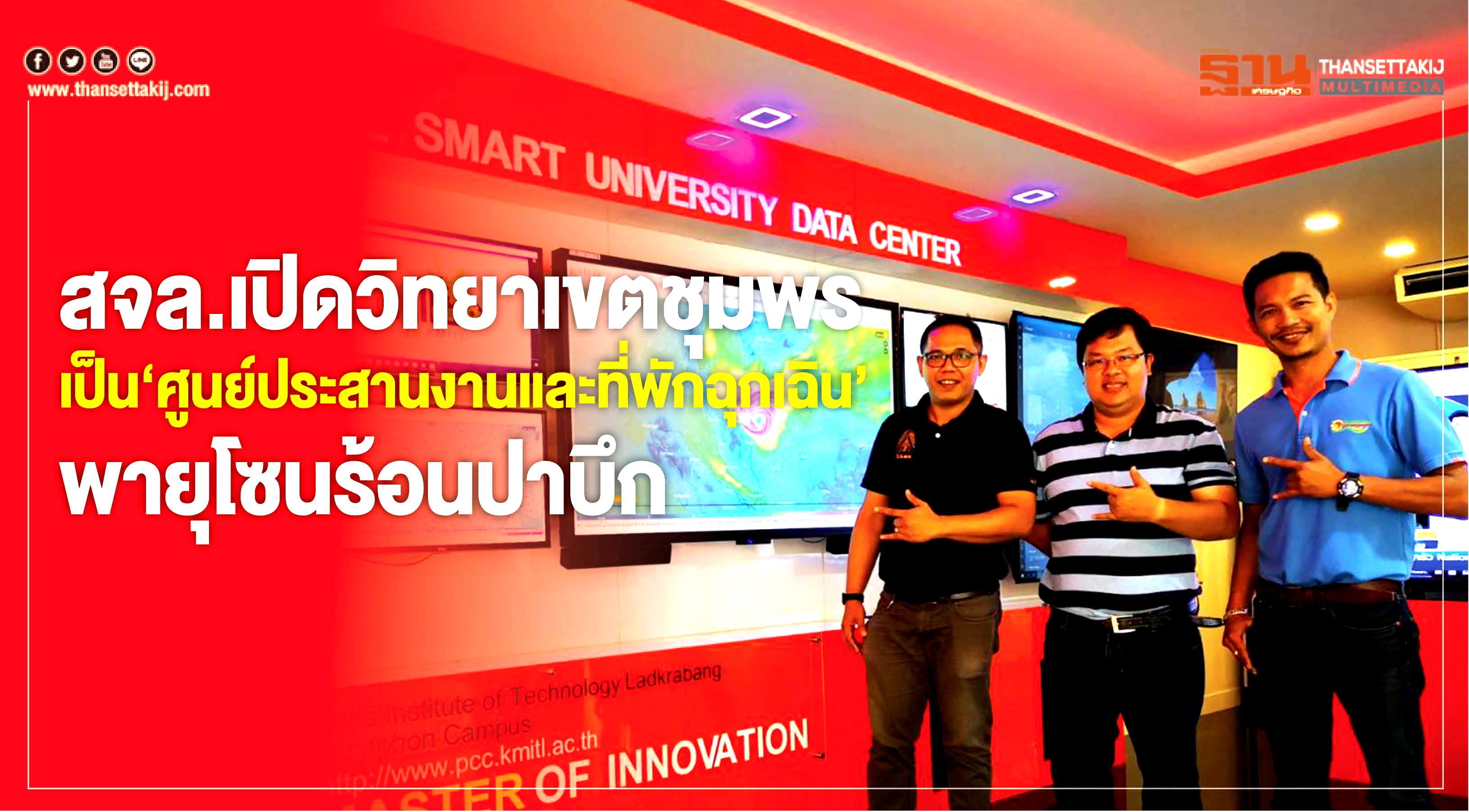 สถาบันเทคโนโลยีพระจอมเกล้าเจ้าคุณทหารลาดกระบัง (สจล.) วิทยาเขตชุมพรเขตรอุดมศักดิ์ เปิด“ศูนย์ประสานงานและที่พักฉุกเฉินผู้ประสบภัยพายุโซนร้อนปาบึก” เพื่อเป็นจุดพัก จุดหลบภัยชั่วคราว สำหรับผู้ประสบภัยตลอดจนเพื่อช่วยเหลือและอำนวยความสะดวกแก่ประชาชน และเป็นศูนย์กลางการประสานงานอาสาสมัคร จากหน่วยงานต่างๆ และประชาชนที่จะมาเป็นจิตอาสาในด้านต่างๆ อาทิ ศูนย์ปฐมพยาบาล น้ำ-อาหาร ห้องน้ำสะอาดในอาคาร ฯลฯ