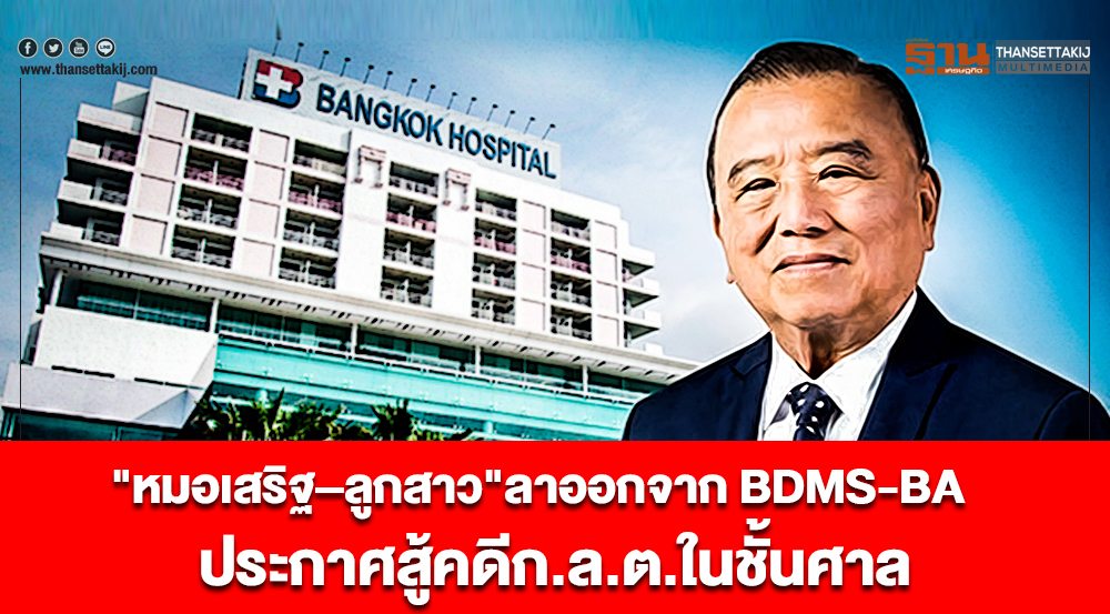 "BDMS - BA" แจ้งตลาดหลักทรัพย์ "หมอเสริฐ " และบุตรสาว ลาออกจากทุกตำแหน่งมีผล 21 ม.ค. นี้ หลังถูก ก.ล.ต. กล่าวโทษ พร้อมเข้าสู่กระบวนการยุติธรรมเพื่อพิสูจน์ความบริสุทธิ์ ยันไม่กระทบต่อฐานะการเงินและการดำเนินงานของบริษัท ประชุมบอร์ดแต่งตั้งบุคคลเข้าทำหน้าที่แทน 23-24 ม.ค. นี้