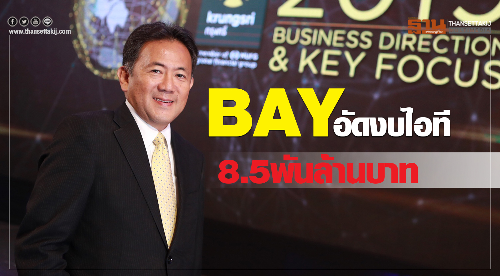 ธนาคารกรุงศรีอยุธยา อัดงบไอที 7.5-8.5 พันล้านบาท จากปีก่อนอยู่ที่ 5 พันล้านบาท สร้างประสบการณ์ลูกค้า-เพิ่มนวัตกรรม เล็งปล่อยกู้ดิจิตอลเลนดิ้ง ระบุมองจีดีพีไทยโต 4.1% พร้อมตั้งเป้าสินเชื่อโต 6-8% คาดสินเชื่อรายย่อยโตดี 8-10% ชี้ เกณฑ์ธปท.กระทบยอดสินเชื่อปล่อยใหม่หด 10% ด้านเอสเอ็มอีขอโต 3-5% เหตุคุณภาพยังไม่ดีมาก เผยรักษาเอ็นพีแอลไม่เกิด 2.5% ส่วนต่างดอกเบี้ยกรอบ 3.4-3.6% เหตุดิจิตอล-หลักเกณฑ์การกำกับกระทบรายได้ค่าธรรมเนียมหาย