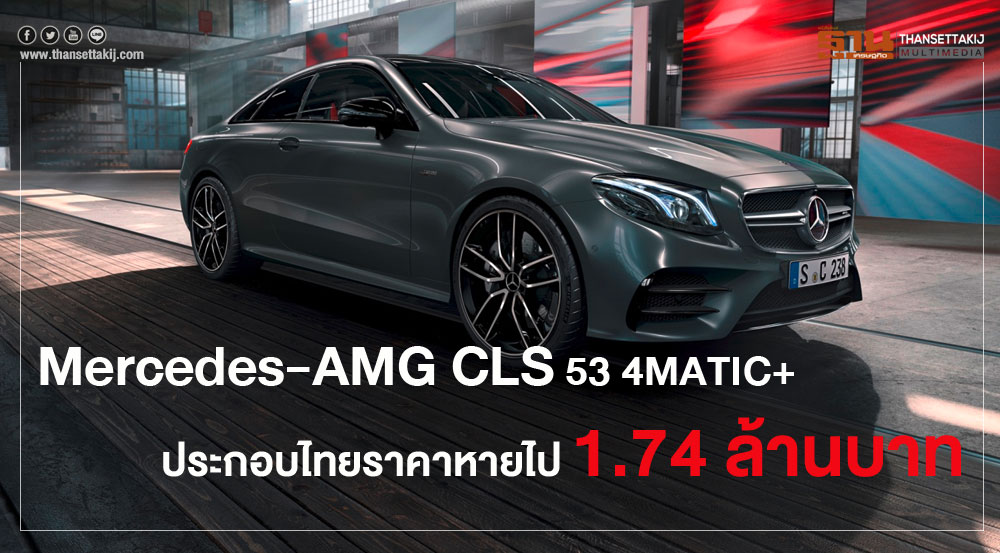 "เมอร์เซเดส-เอเอ็มจี" ที่เริ่มประกอบในเมืองไทยตั้งแต่ปีที่แล้ว ทั้ง C 43 4MATIC Coupe, GLC 43 4MATIC Coupe มาปีนี้ประเดิมเสริมทัพอีกรุ่น คือ Mercedes-AMG CLS 53 4MATIC+ ราคา 5,350,000 บาท ซึ่งถูกกว่าตัวนำเข้าถึง 1.74 ล้านบาท