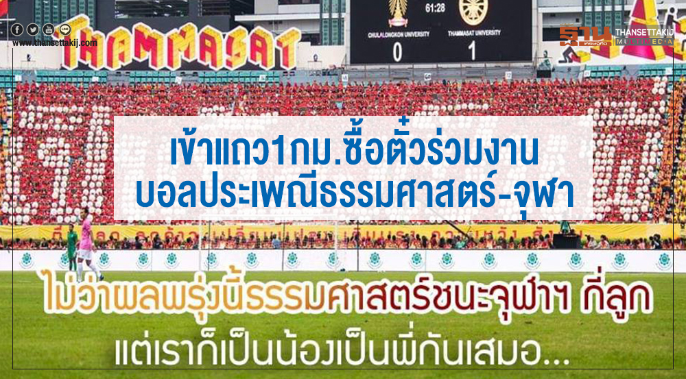 การแข่งขันฟุตบอลประเพณีธรรมศาสตร์-จุฬา ครั้งที่ 73 เริ่มขึ้นแล้ว ตั้งแต่ช่วงสายของวันนี้(9 กุมภาพันธ์ 2562) เมื่อนิสิตนักศึกษา รวมถึงศิษย์เก่าของทั้ง 2 สถาบัน ทะยอยเดินทางไปร่วมงาน ณ สนามศุภชลาศัยกรีฑาสถานแห่งชาติ โดยบางช่วงเข้าแถวซื้อบัตรเข้าสนามยาวกว่า 1 กิโลเมตร