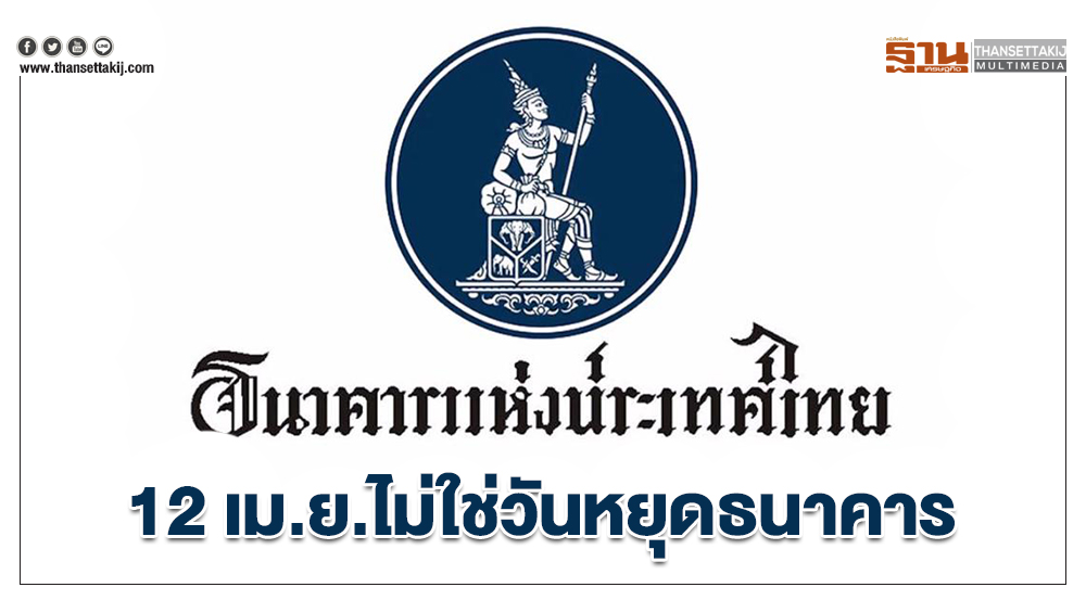 ธปท.ประกาศให้ วันที่ 12 เม.ย. เป็นวันทำการปกติของสถาบันการเงิน