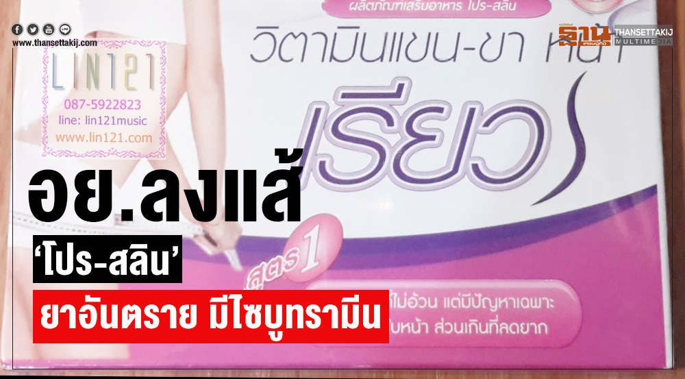 อย. ออกโรงเตือน "โปร-สลิน" อาหารเสริมหน้าเรียว มีสารไซบูทรามีน อันตรายทำให้เกิดความดันสูง หัวใจเต้นเร็วขั้นเสียชีวิต ย้ำ! เป็นสินค้าเถื่อน หลังถูกยกเลิกการขึ้นทะเบียนตั้งแต่ ก.พ. 2561