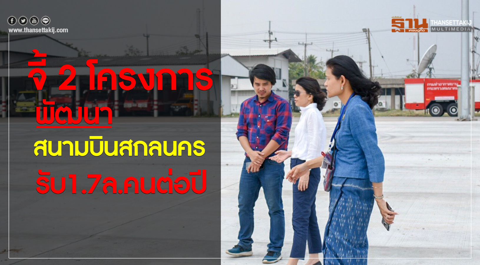 นางอัมพวัน วรรณโก อธิบดีกรมท่าอากาศยาน(ทย.) เผยว่า จากการเดินทางลงพื้นที่ท่าอากาศยานสกลนคร ติดตามแผนขยายสนามบินสกลนคร ทย.กำลังขับเคลื่อน 2 โครงการในการขยายสนามบิน ได้แก่