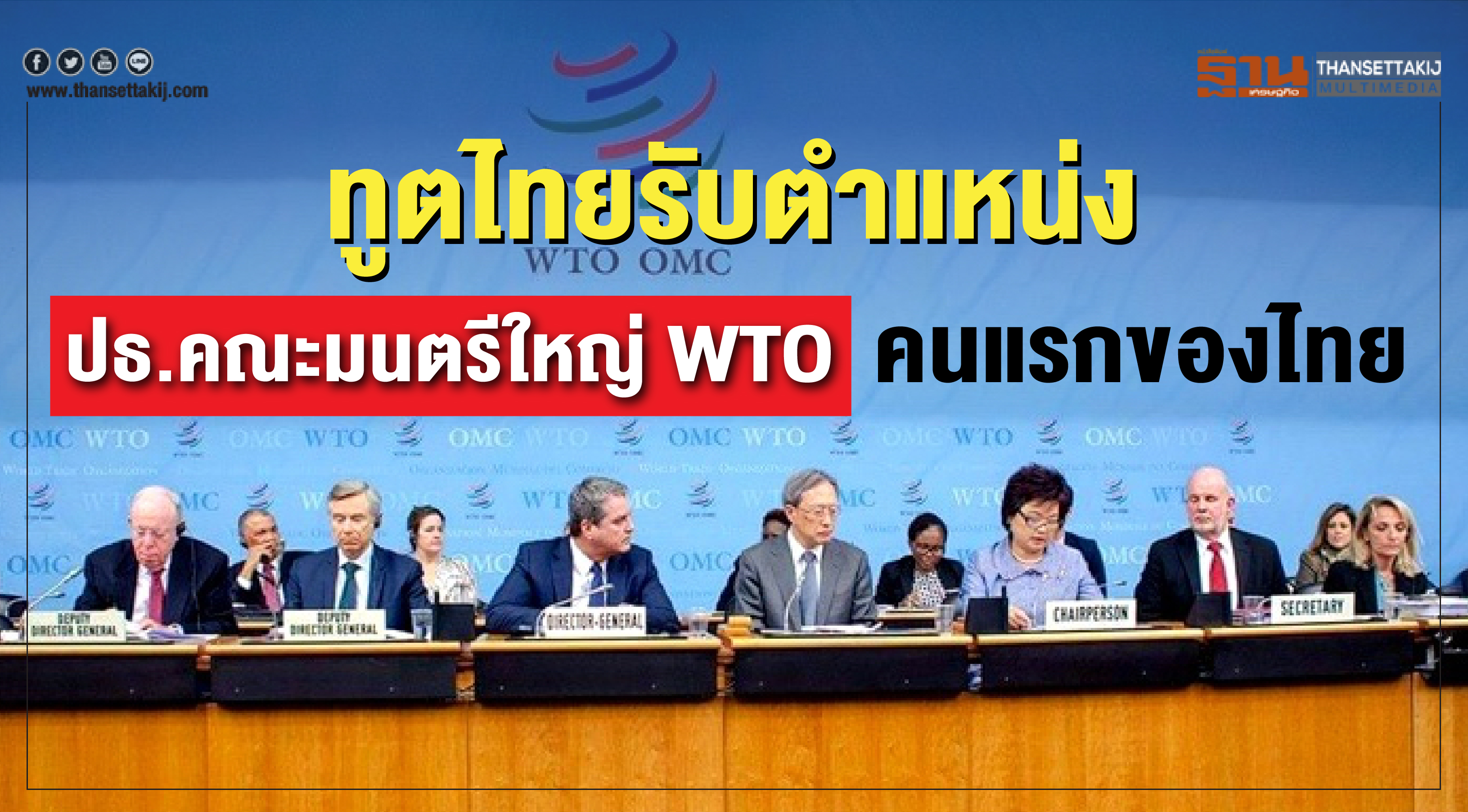 "พาณิชย์" เผย เอกอัครราชทูตคณะผู้แทนถาวรไทย ประจำองค์การการค้าโลก (WTO) รับตำแหน่งประธานคณะมนตรีใหญ่ WTO ต่อจากผู้แทนญี่ปุ่น นับเป็นคนไทยคนแรกที่ได้รับเกียรติให้ทำหน้าที่นี้ ตั้งแต่ก่อตั้ง WTO ปี 38