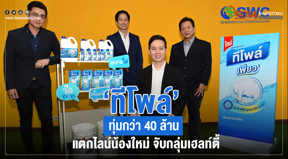 'ทีโพล์' รุกหนักตลาดน้ำยาล้างจาน ส่ง "ทีโพล์ เพียว" ปลุกกระแสคนดูแลใส่ใจสุขภาพ เน้นกลุ่มผู้หญิงที่ฉลาดเลือก ฉลาดใช้ พร้อมทุ่มงบการตลาดกว่า 40 ล้านบาท สร้างการรับรู้ในตัวผลิตภัณฑ์ ทั้งออนไลน์และออฟไลน์ ผ่านกลยุทธ์ 360 องศา มั่นใจ! ยอดขายโต 30%