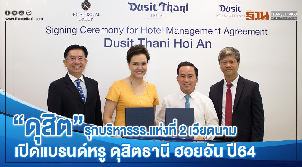 ดุสิตอินเตอร์เนชั่นแนล ได้รุกเข้าบริหารโรงแรมในเวียดนนามอย่างต่อเนื่องหลังจากเปิดตัว โรงแรมดุสิต ปริ๊นเซส มูนไรส์ บีช รีสอร์ท ฟู้โกว๊ก เมื่อเดือนพฤษภาคมในปี 2561 ที่ผ่านมา โดยล่าสุดได้ลงนามในสัญญารับจ้างบริหารร่วมกับ บริษัท ฮอยอัน รอยัล กรุ๊ป เพื่อบริหาร “โรงแรม ดุสิตธานี ฮอยอัน” โรงแรมหรูระดับห้าดาว ที่ตั้งอยู่ริมชายหาดเมืองเดียนบาน ห่างจากย่านเมืองมรดกโลก ซึ่งเป็นเมืองเก่าของฮอยอัน เพียง 5 กิโลเมตร และถือเป็นแบรนด์ดุสิตธานีแห่งแรกในประเทศเวียดนาม