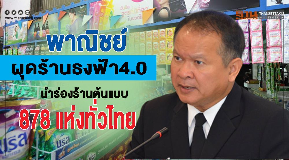 กรมการค้าภายในเดินหน้าสร้างความแข็งแกร่งให้กับร้านค้าธงฟ้าประชารัฐ เตรียมผลักดันให้เป็น “ร้านค้าธงฟ้าประชารัฐ 4.0” ตั้งเป้าผุดร้านต้นแบบอำเภอละ 1 แห่ง นำร่อง 878 แห่ง ก่อนเข้าไปช่วย ทั้งนำระบบ POS มาใช้ซื้อขาย เช็กสต๊อก ดันเป็นจุดรับชำระค่าน้ำ ค่าไฟ บัตรเครดิต เป็นจุดกระจายสินค้าชุมชน ขายออนไลน์ พร้อมประสานแบงก์ปล่อยกู้ มี บสย.ค้ำ ดึงขนส่งช่วยรับส่งสินค้า มั่นใจสู้ร้านสะดวกซื้อได้แน่