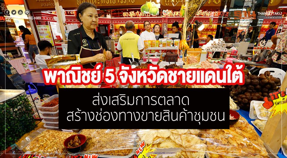 พาณิชย์ 5 จังหวัดชายแดนใต้ ผนึกกำลังส่งเสริมชุมชนสร้างเสริมรายได้ พัฒนาชุมชนเข้มแข็ง จัดงานแสดงและจำหน่ายสินค้า “Southern Street Market : ของดี วิถีเด่น ชายแดนใต้” ที่ศูนย์การค้าฟิวเจอร์พาร์ครังสิต ชั้น G โซนร้านทอง และ หน้า Big C จังหวัดปทุมธานี 30 พฤษภาคม - 3 มิถุนายนนี้ พร้อมเตรียมสานต่อพัฒนาช่องทางการตลาดและการเชื่อมโยงตลาดการค้านราฯ 4.0