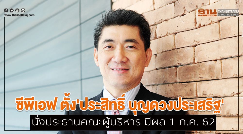 บริษัท เจริญโภคภัณฑ์อาหาร จำกัด (มหาชน) หรือ ซีพีเอฟ แจ้งตลาดหลักทรัพย์แห่งประเทศไทย เรื่องการแต่งตั้งผู้บริหารระดับสูงว่า ที่ประชุมคณะกรรมการบริษัท เมื่อวันที่ 12 มิถุนายน 2562 มีมติอนุมัติการแต่งตั้ง นายประสิทธิ์ บุญดวงประเสริฐ ให้ดำรงตำแหน่ง ประธานคณะผู้บริหาร โดยมีผลตั้งแต่วันที่ 1 กรกฎาคม 2562 เป็นต้นไป