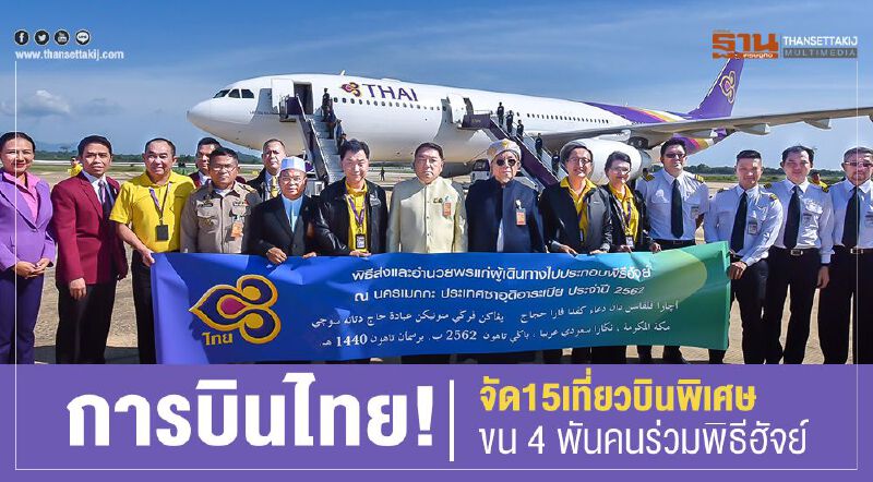 โดยในปี 2562 การบินไทยร่วมกับสมาคมผู้ประกอบกิจการฮัจย์ สมาคมผู้ประกอบกิจการฮัจย์ภาคใต้ และสมาคมผู้ประกอบการกิจการฮัจย์ สามจังหวัดชายแดนใต้ จัดเที่ยวบินพิเศษเช่าเหมาของการบินไทยขนส่งผู้แสวงบุญชาวไทยมุสลิมประจำปีนี้ จำนวน 15 เที่ยวบินไปและกลับ สามารถรองรับผู้แสวงบุญไปประกอบพิธีฮัจย์ จำนวนประมาณ 4,325 คน โดยเป็นเที่ยวบินออกจากท่าอากาศยานจังหวัดนราธิวาส 9 เที่ยวบิน และท่าอากาศยานจังหวัดกระบี่ 2 เที่ยวบิน ท่าอากาศยานสุวรรณภูมิ 4 เที่ยวบิน ให้บริการด้วยเครื่องบินแอร์บัส A330-300 โดยมีรายละเอียด ดังนี้