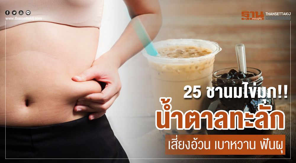 มูลนิธิเพื่อผู้บริโภค เผยผลตรวจ "ชานมไข่มุก" 25 ยี่ห้อ น้ำตาลสูงปริ๊ด เฉลี่ย 4-18.5 ช้อนชา มีเพียง 2 ยี่ห้อต่ำกว่า 6 ช้อนชา เสี่ยงเป็นโรคความดันโลหิตสูง เบาหวาน อ้วนและฟันผุ