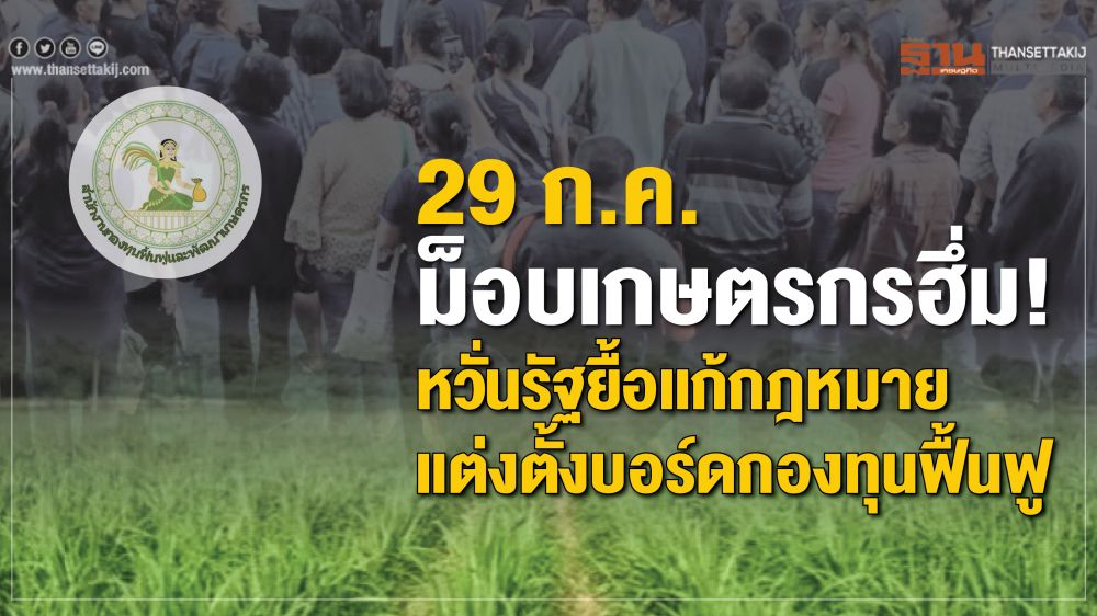 “ฐานเศรษฐกิจ” ยังตามติดข่าวความเคลื่อนไหวสำนักงานกองทุนฟื้นฟูและพัฒนาเกษตรกร (กฟก.) ได้มีผู้แทนเกษตรกร 21 เรียบร้อยแล้ว ตั้งแต่วันที่ 17 มิถุนายนที่ผ่านมา แต่ยังรอนายเฉลิมชัย ศรีอ่อน รัฐมนตรีว่าการกระทรวงเกษตรและสหกรณ์คนใหม่ลงนามนั้น