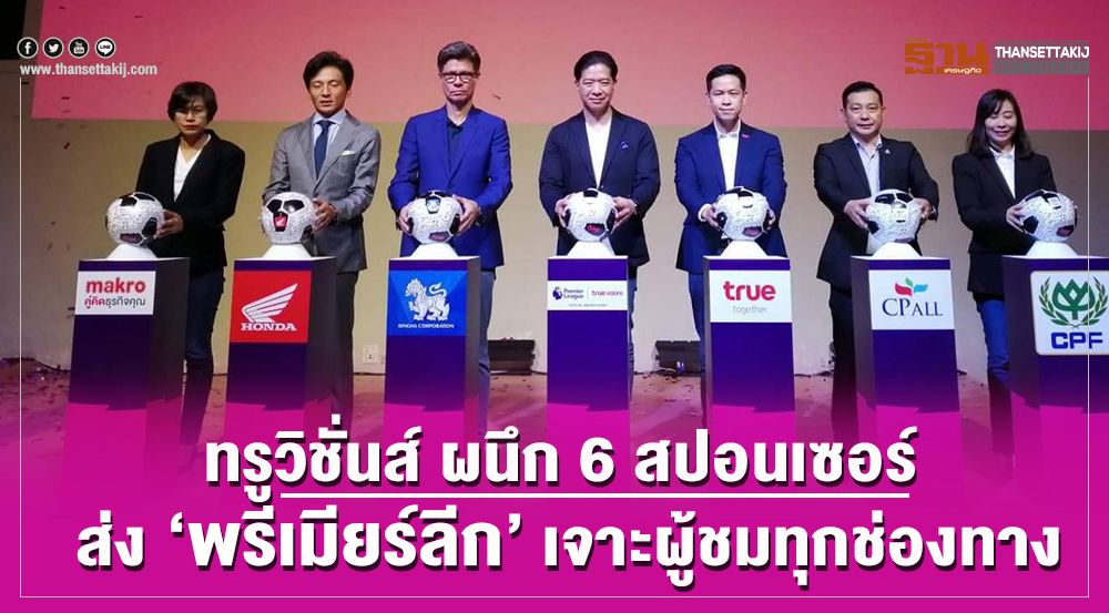 นายพีรธน เกษมศรี ณ อยุธยา ผู้ช่วยบริหารงานประธานคณะผู้บริหารและหัวหน้าคณะผู้บริหาร ด้านคอนเทนต์และมีเดีย บริษัท ทรู คอร์ปอเรชั่น จำกัด (มหาชน) เปิดเผยว่า ล่าสุดบริษัทได้มี 6 สปอนเซอร์รายใหญ่เข้าร่วม ได้แก่ ทรู คอร์ปอเรชั่น, สิงห์ คอร์เปเรอชั่น, ซีพี ออลล์, เอ.พี. ฮอนด้า, ซีพีเอฟ และ สยามแมคโคร ร่วมถ่ายทอดสดฟุตบอลพรีเมียร์ลีกอังกฤษกันครบ 380 แมตซ์ตลอด 3 ฤดูกาล