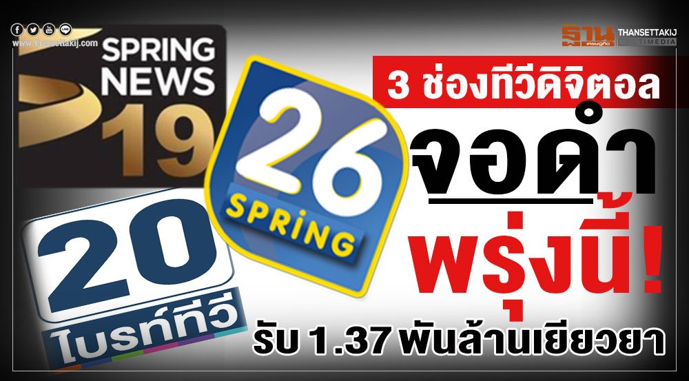 กสทช. สั่งจ่ายคืนเงินเยียวยา 3 ช่องทีวีดิจิตอล Spring News, ช่อง Spring26 และช่อง Bright TV จำนวน 1.37 พันล้านบาทพร้อมยุติออกอากาศ 16 สิงหาคมนี้