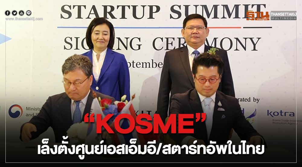 เอ็นไอเอร่วมมือ KOSME เพื่อพัฒนาและสนับสนุนการเติบโตของสตาร์ทอัพระหว่างประเทศ ชี้จะช่วยทำให้เติบโตได้แบบก้าวกระโดด ระบุเกาหลีเตรียมจัดตั้งศูนย์เอสเอ็มอีและสตาร์ทอัพในไทย