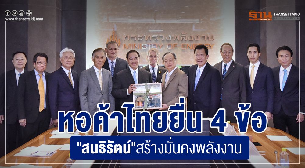 “กลินท์”นำทีมบิ๊กหอการค้าไทยหารือ “สนธิรัตน์” ยื่น 4 ข้อเสนอสร้างความมั่นคงด้านพลังงานประเทศ พร้อมช่วยเพิ่มรายได้เกษตรกร สร้างเสถียรภาพราคาสินค้าเกษตรระยะยาว ติงอบรมสัมมนาเปิดแอร์ต่ำกว่า 25 องศา เปลืองใช่เหตุ