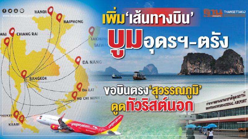 เพิ่ม‘เส้นทางบิน’ บูมอุดรฯ-ตรัง ขอบินตรง‘สุวรรณภูมิ’ดูดทัวริสต์นอก