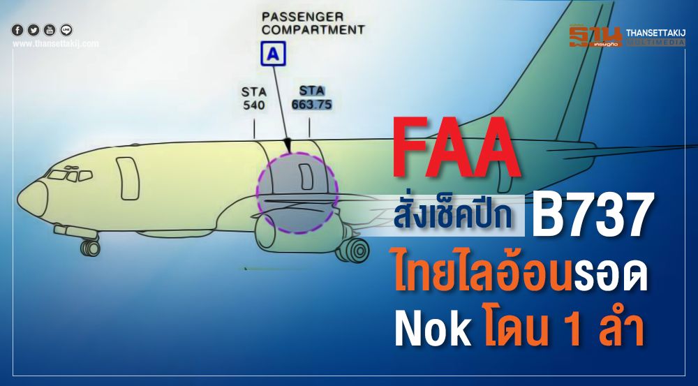 กพท. ชี้แจงสายการบินของไทยมี “นกแอร์” รายเดียวที่เข้าข่าย FAA ต้องตรวจสอบเครื่องบินโบอิ้ง 737 จำนวน 1 ลำ ส่วนไทยไลอ้อนรอด เหตุฝูงบินโบอิ่้งทั้ง 30 ลำยังบินไม่ถึงหมื่นเที่ยว