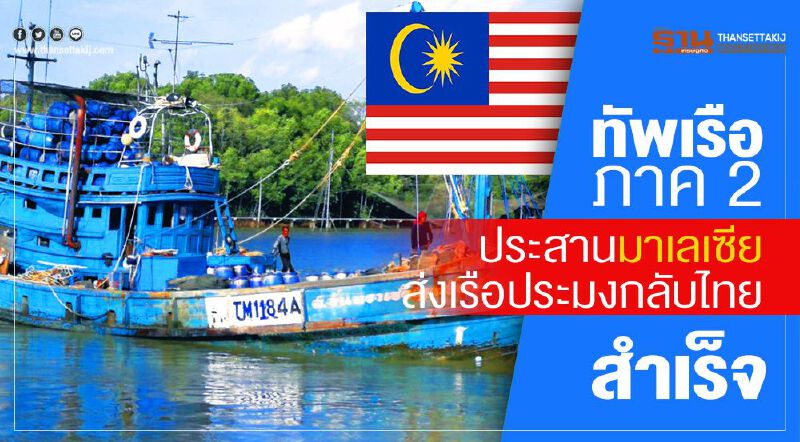 ทัพเรือภาค 2 ประสานมาเลเซียส่งเรือประมงกลับไทยสำเร็จ